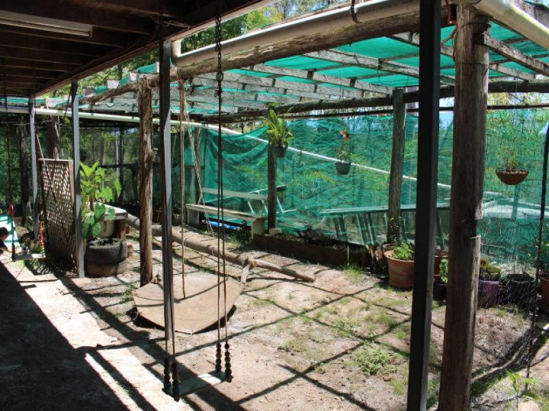 A large covered shade house for growing plants. Chook shed.