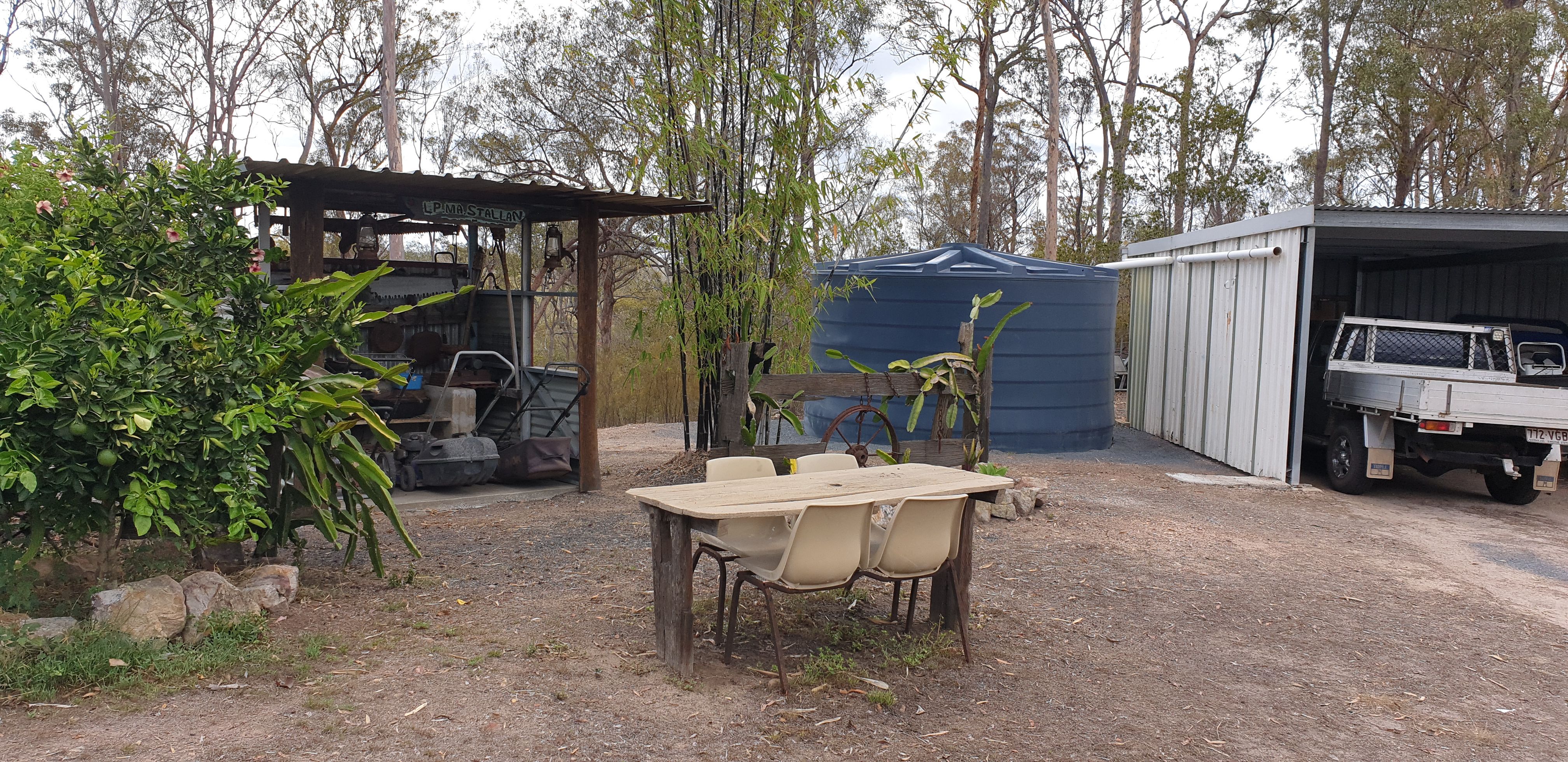 Three bay colorbond shed and workshop and a three-bay farm shed up the rear of the property.