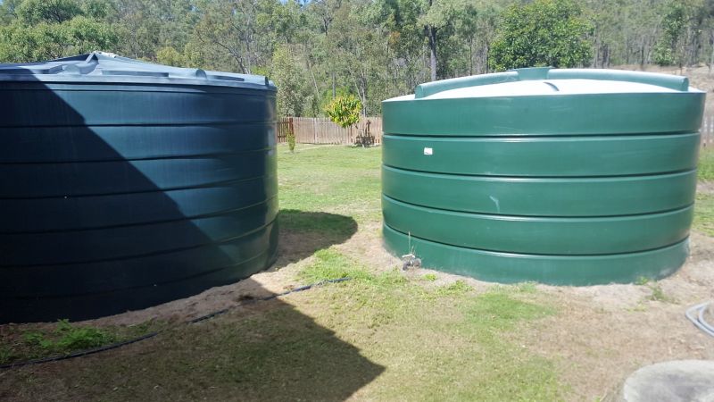 2 x 5000gal water tanks and a dam.