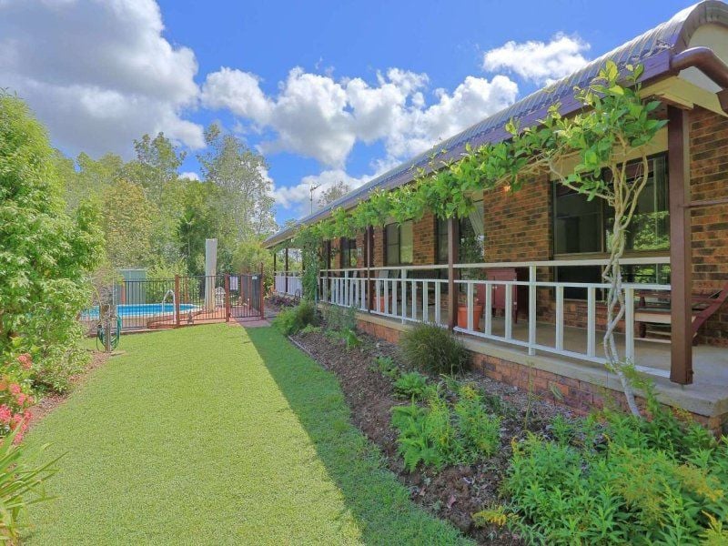 This spacious hidden gem is truly a surprise at the end of a long sweeping drive lies a bit of paradise on 33 acres. A 4 bedroom brick home surrounded by lush sub-tropical gardens tailored to accommodate friends and family with a huge expansive well designed patio. The elevated views from the front verandah are breathtaking overlooking the sparkling pool.