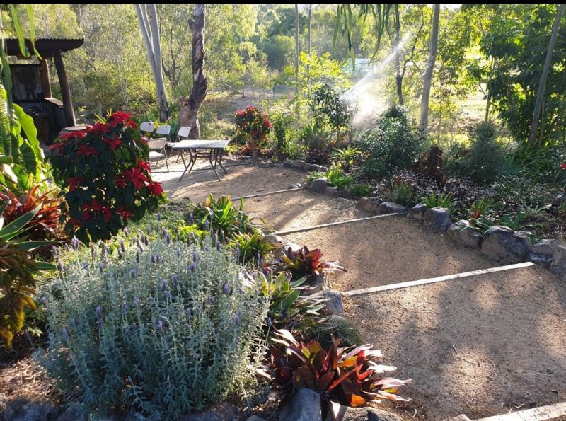 Outside the gardens are landscaped and low maintenance's as well as the entertainment area at the house, there is another one away from the house with covered cooking and prep area with a fire pit.