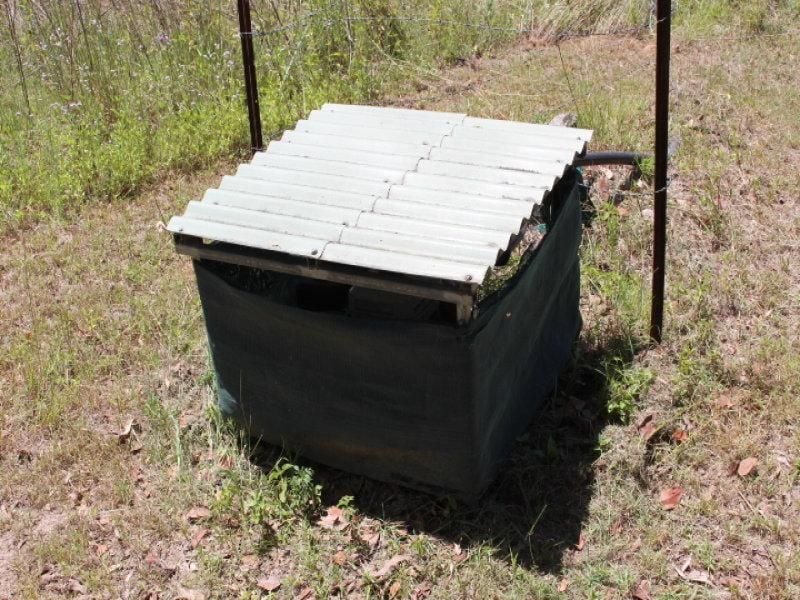 The property has a bore which is pumped up to a tank stand at the weekender so it can gravity feed the cabin and irrigation system.