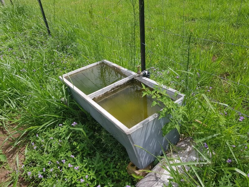 Divided into paddocks and all well fenced. Each paddock has a drinking trough.