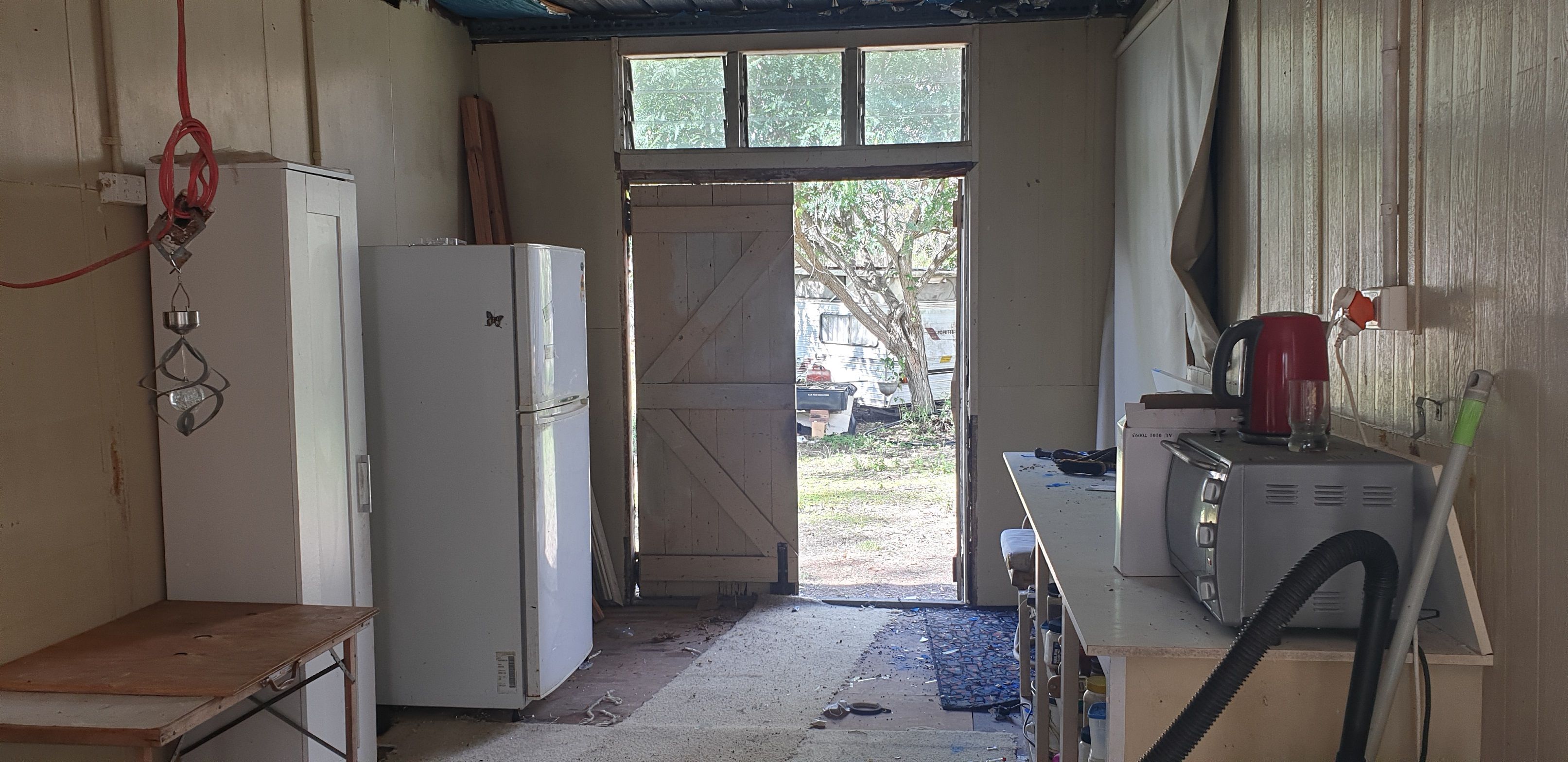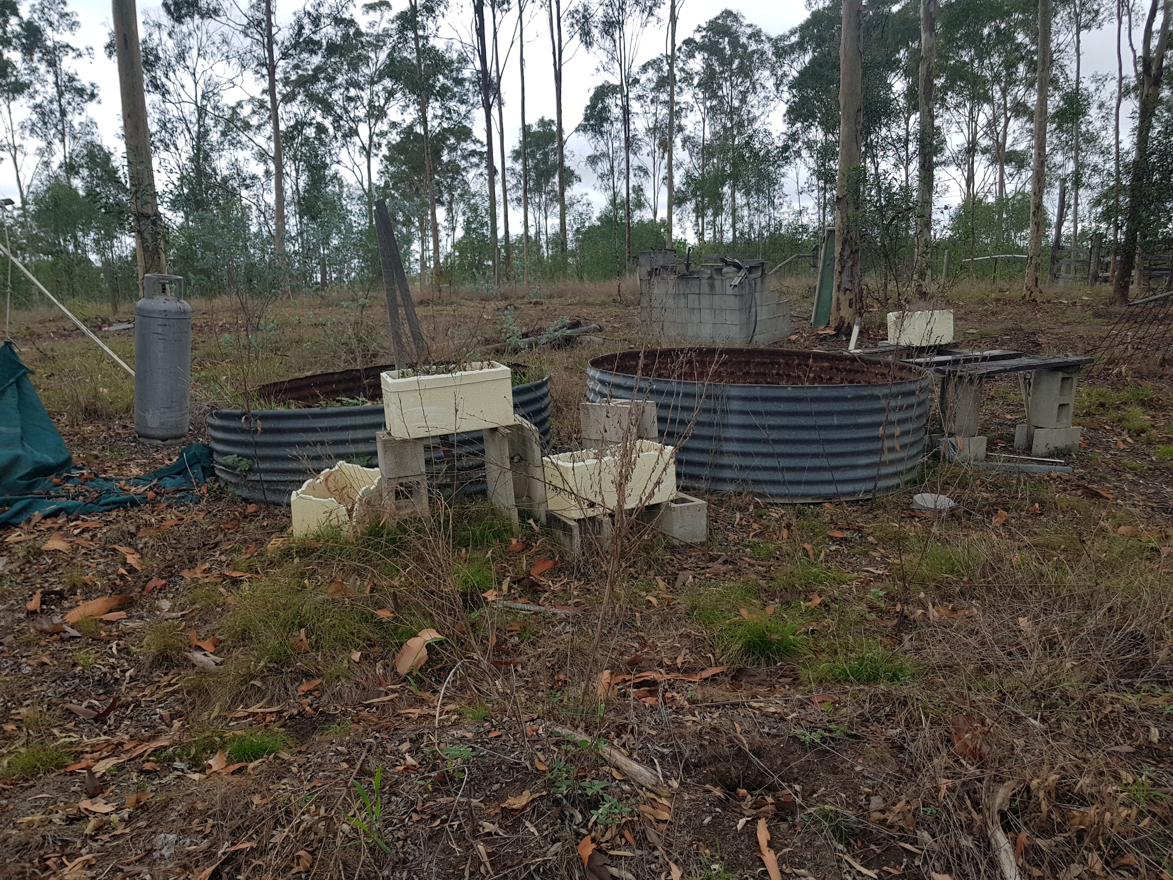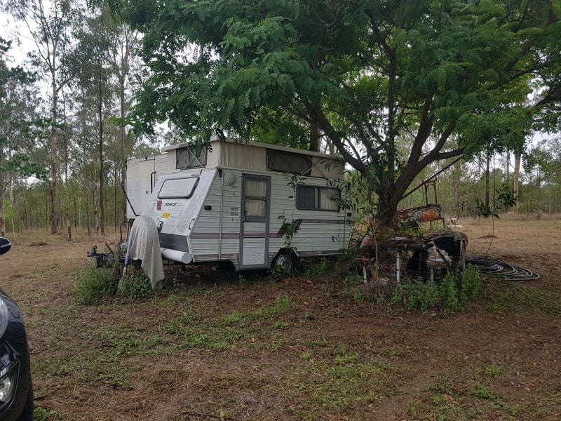 Two small caravans, cultivators, pumps and assorted tools.