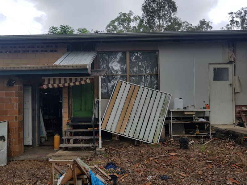 Assorted household goods, timber yards.