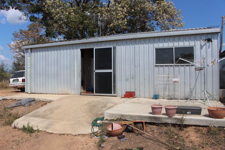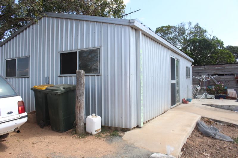 Liveable shed that needs a bit of a tidy up with small kitchen, shower, bedroom and power connected.